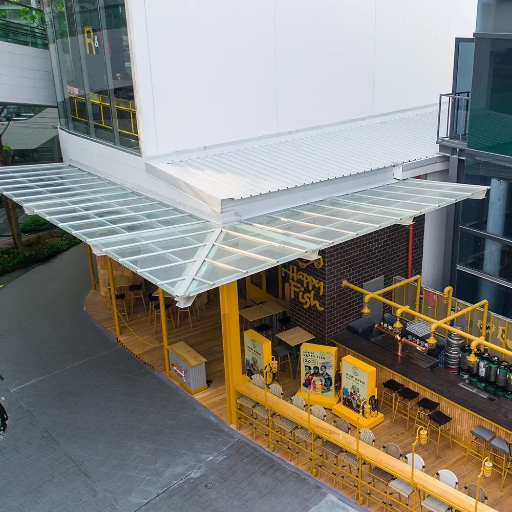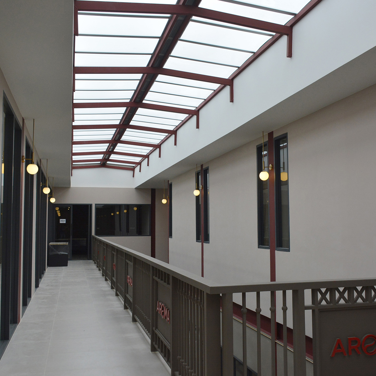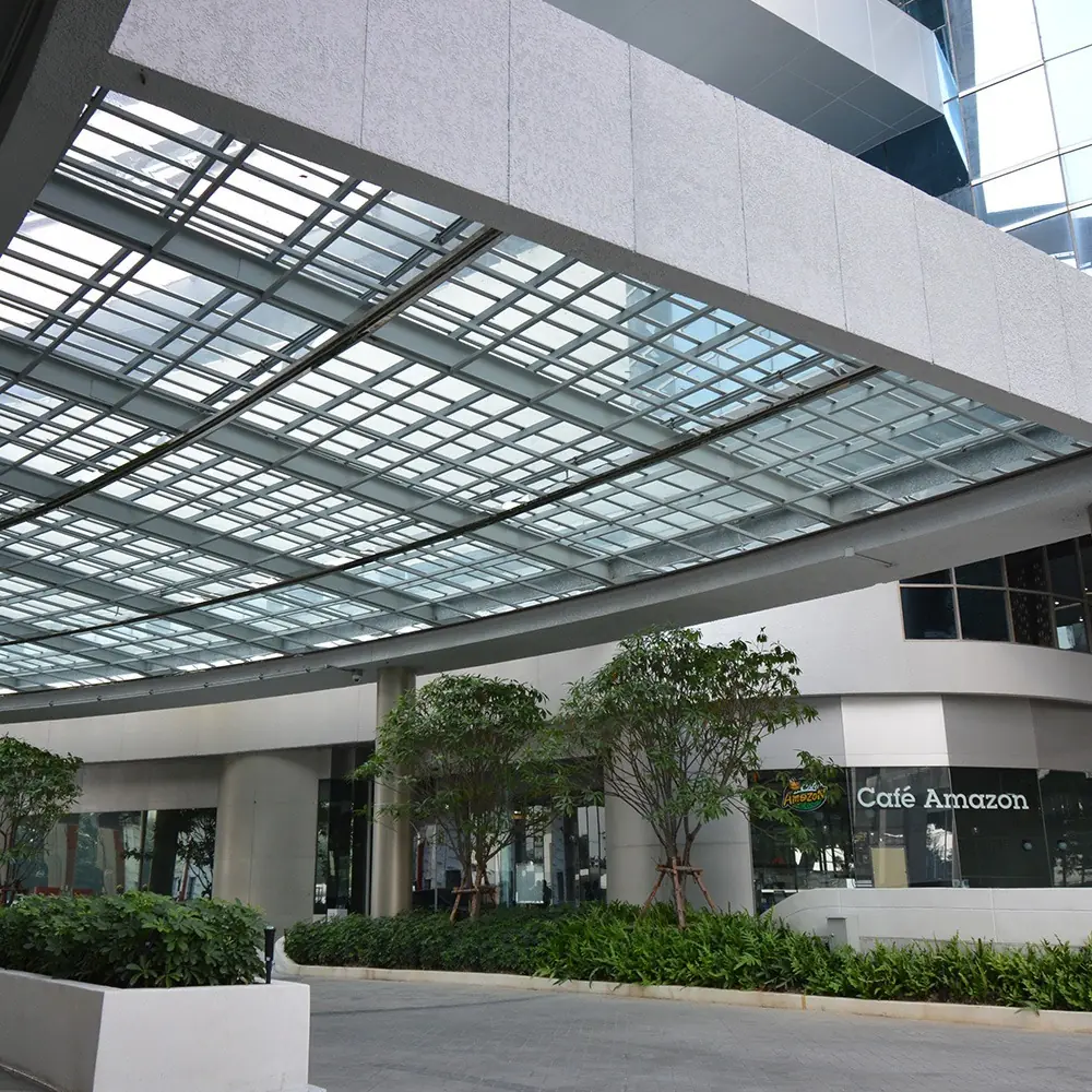 AMPGLAZE® is an architectonic glazing system with elegant design and appearance. It offers high versatility, low maintenance and a sustainable design for various architectonic challenges. AMPGLAZE® incorporates standing-seam profiling and glazing that enable wide spans and high load resistance. It can be specified in various lengths to match various structures, including flat and curved designs.