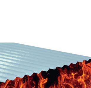 Traditional methods of fire retardant roofing products include the addition of chemicals, especially Bromine. This chemical is toxic when burnt and degrades the integrity of the fibreglass when exposed to the sun or UV light. FS FireCheck is completely free from Bromine fire retardant chemical, and surpasses any previous fibreglass sheeting fire retardant category. FS FireCheck is now in it’s own class of fire proofing protection.